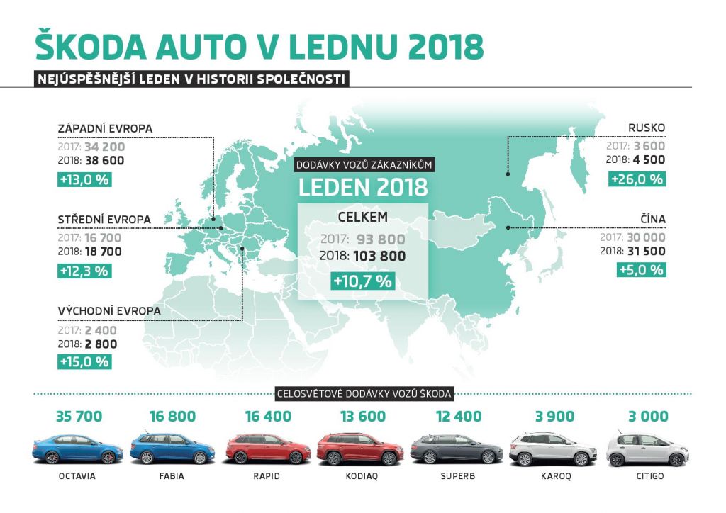 ŠKODA AUTO v lednu pokračovala v úspěšném kurzu